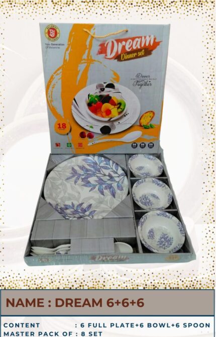 dream 18pcs dinner set 6 full plate 6 bowl 6 spoon carry bag box